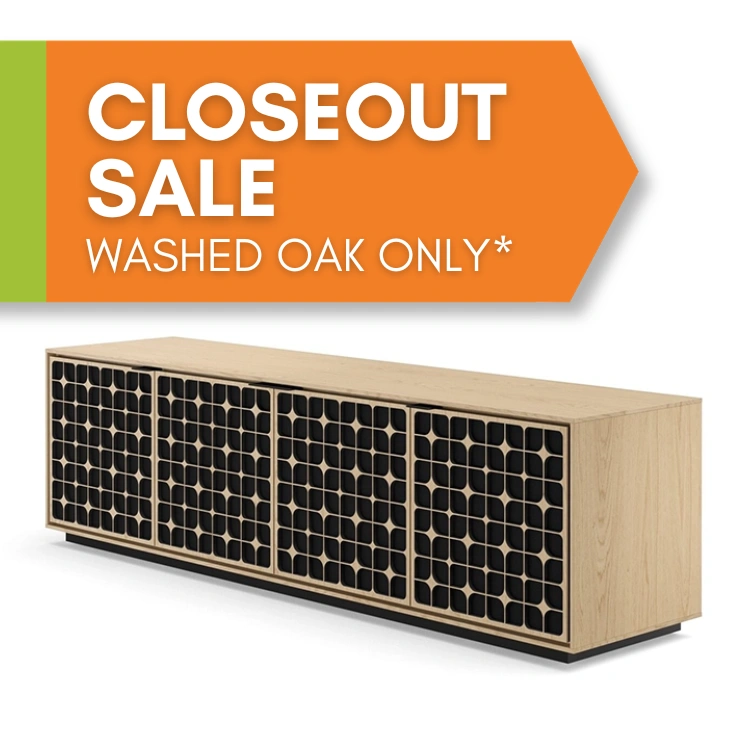 Precisely crafted doors with perforated metal backing offer ventilation and IR-remote compatibility, keeping your media components accessible and ventilated with sleek, understated elegance. Inside the doors, a black fabric lining adds a refined touch, while fully adjustable soft-close hinges ensure they stay silently in perfect alignment.
