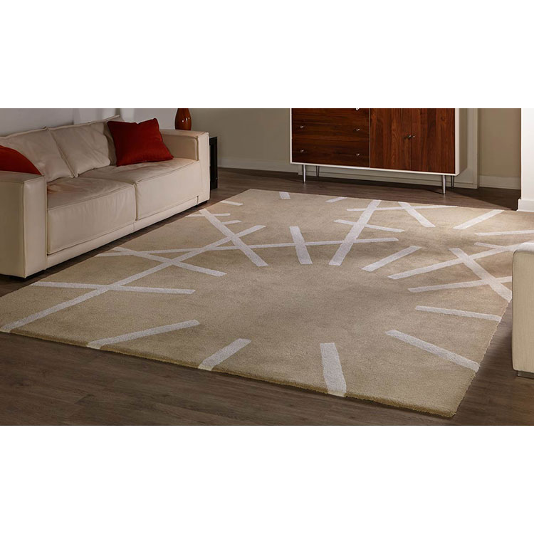 3/4 inch tufted field in New Zealand Wool or 100% recycled nylon, and 3/4 inch hand tufted cut pile detail. See showroom for more details.