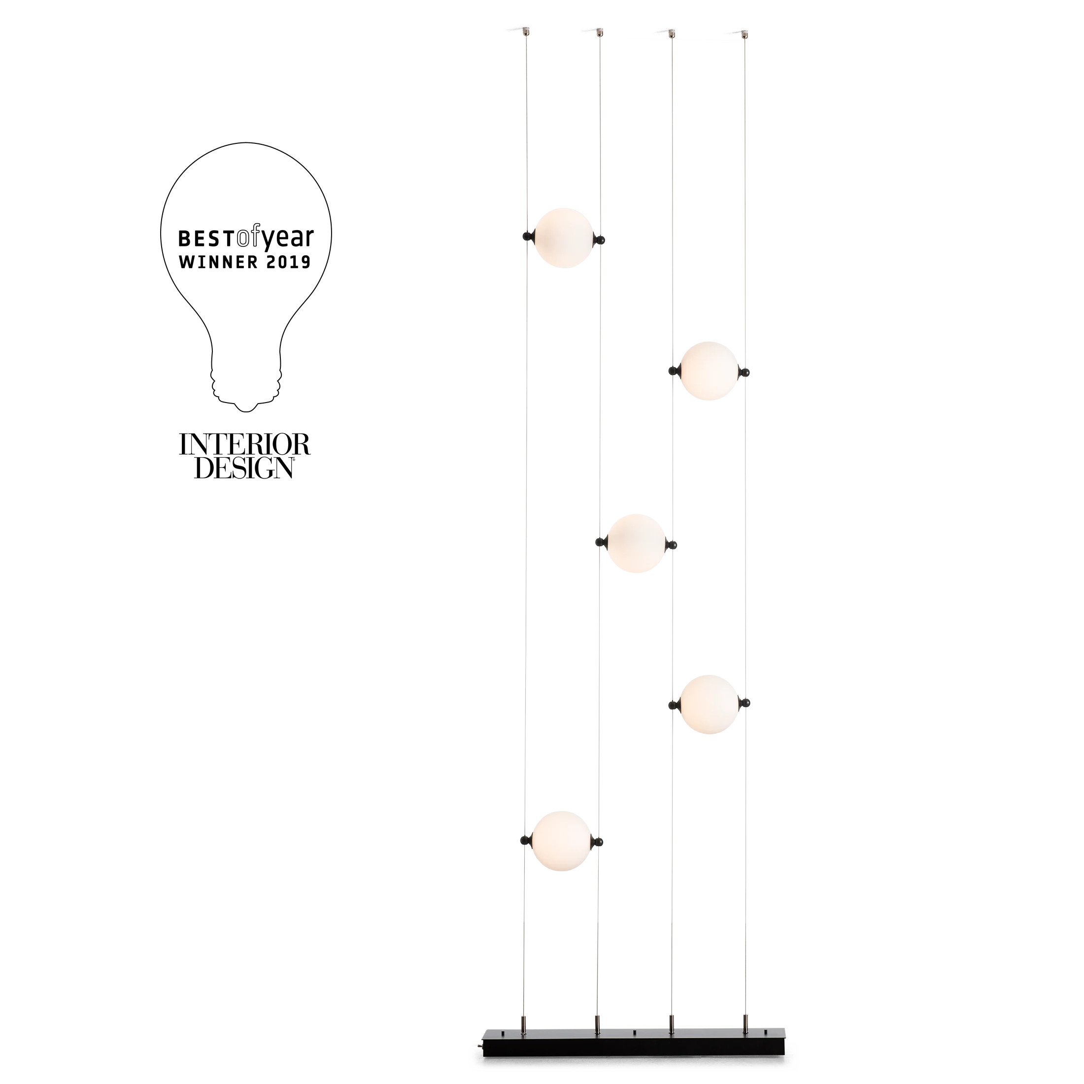 Description: The Abacus 5 Light Floor to Ceiling LED Lamp by Hubbardton Forge is a highly customizable statement lighting piece featuring five hand blown glass globes that slide along low voltage cable rails for adjustable placement. Designed for both function and artistry, this floor to ceiling lamp plugs into a standard outlet and uses integrated LED technology for efficient, modern illumination. With its sculptural presence, flexible configuration, and handcrafted quality, the Abacus LED Lamp is ideal for living rooms, entryways, and contemporary interiors seeking innovative, designer lighting.