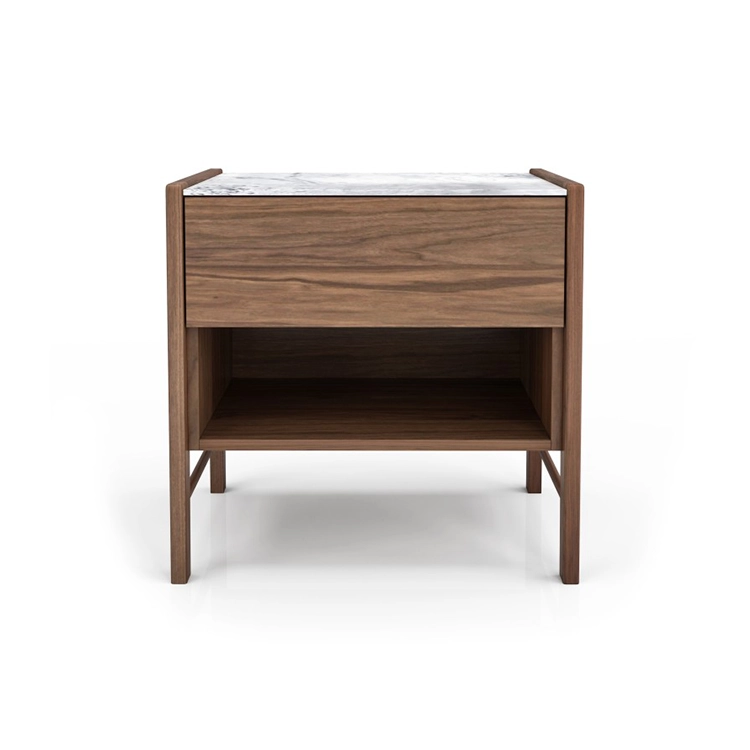 This small but functional nightstand features a sleek, minimalist design with a touch-open drawer and large lower shelf. The Frida NOW is finished on all sides, ensuring it looks stunning from every angle. Choose from 4 wood finish colors and a natural stone, cream lacquered glass, or wood top.