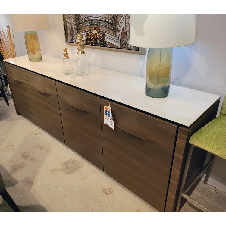 The Mag Plus 4-Door Contemporary Sideboard by CALLIGARIS features sculpted door handles and is the perfect companion for your Calligaris dining table. The doors open with a simple push-pull opening mechanism. Each of the internal storage compartments features a tempered glass shelf to give you plenty of storage space. Industrial design and technology come together in this elegant sideboard with a ceramic top.