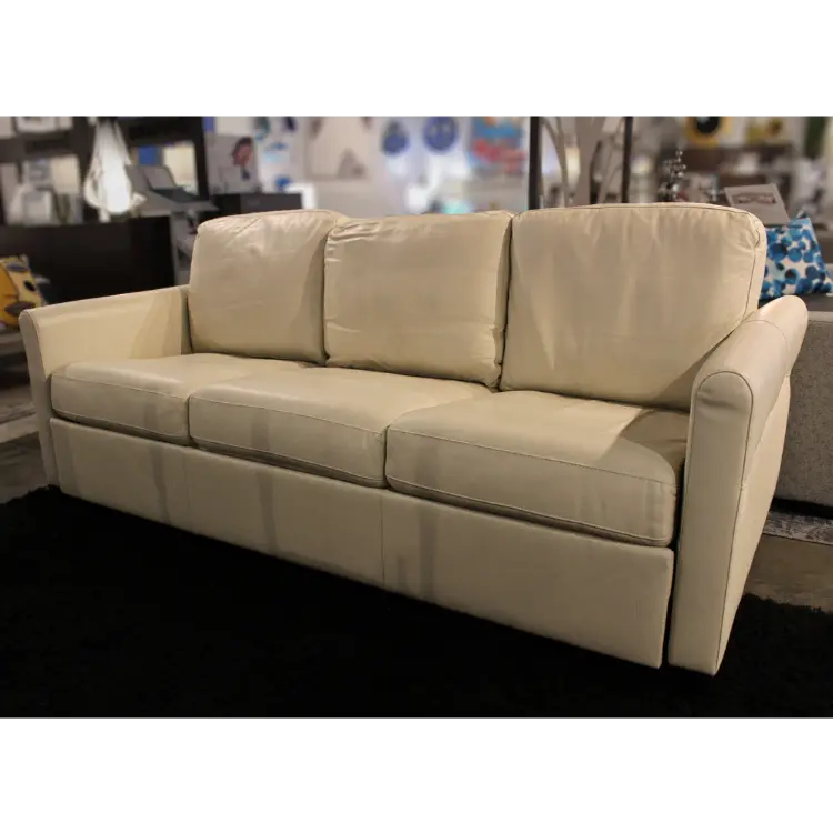 With its inviting profile and beautifully engineered pull-out bed, the Madeline offers both style and everyday practicality. The arms are sleek and rounded, finished with a gentle outward curve that adds a refined softness to the overall form. Clean topstitching along the exterior enhances the tailored look while providing just enough contrast to keep the piece visually engaging.